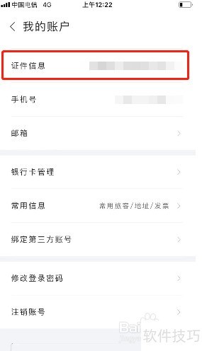 2、 点击证件信息进入页面