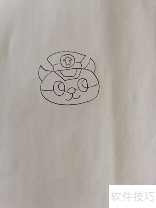 2、 接着绘制黑猫警长的头部及其警帽。