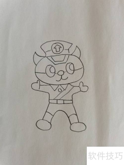 4、 最后画出黑猫警长的腿部线条,这个可爱的动画角色便完整呈现了。