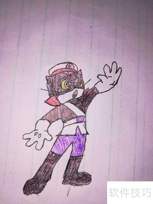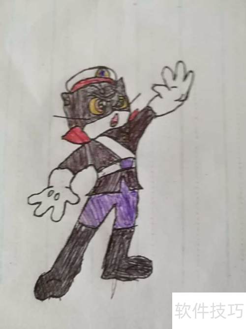 3、 画完头部和身体后,接着简单处理黑猫警长的服装,注意用线条清晰区分上衣与裤子的分界。