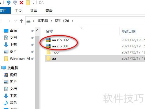 4、 最终可见,你的文件被分割成两个压缩包,此功能主要用于将大文件分卷压缩,便于存储与传输。