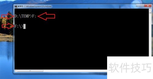 14、 进入F盘根目录可直接输入F:,若需进入F盘下子目录,则使用cd /D命令切换到指定路径。