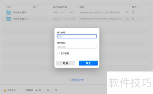 4、 进入压缩文件主界面后,点击设置密码选项,即可为文件添加密码保护。