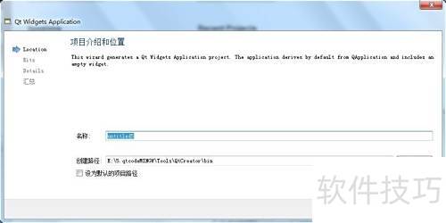 3、 请将程序创建路径设为Qt安装目录下Tools文件夹中的QtCreator子目录的bin目录。