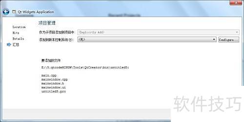 5、 配置类名、基类及头文件、源文件和界面文件的名称。