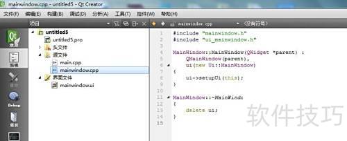 7、 Qt界面项目已创建完毕,可开始编写代码。