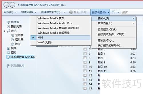 3、 进入翻录设置后,在格式化选项中选择MP3格式,接着在音频质量里建议选256K,普通用户无需追求极致音质,各档位听感差异不大。特别要留意第五项更多选项的内容,需根据需要进行相应设置,避免遗漏关键配置。