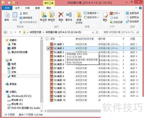 6、 翻录结束后关闭Windows Media Player,打开资源管理器并进入音乐库,会发现新增的文件夹。进入该文件夹后,即可看到已生成的15首MP3格式歌曲。将文件夹名称修改为便于识别的名称,整理完成。