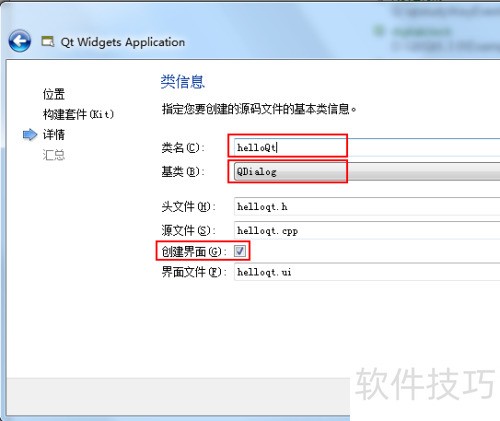 5、 输入类名,选择基类QDialog,并勾选创建界面选项。