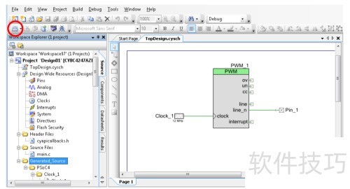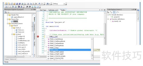 17、 在PSoC Creator中打开main.c文件,根据应用需求添加相应代码。
