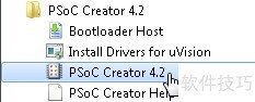 4、 启动PSoC Creator可通过多种方式实现:可在已安装的应用程序列表中找到该软件并点击运行,也可通过Windows开始菜单搜索PSoC Creator来快速定位并打开程序,操作简便,便于用户快速进入开发环境。