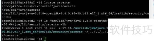 6、 所示,已确认Java版本为1.8,证书库路径位于/etc/pki/java/cacerts。
