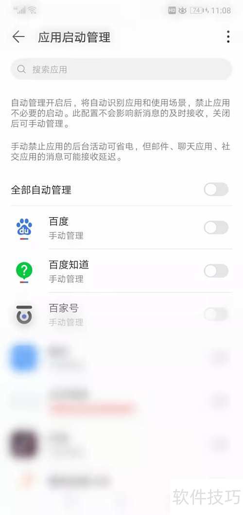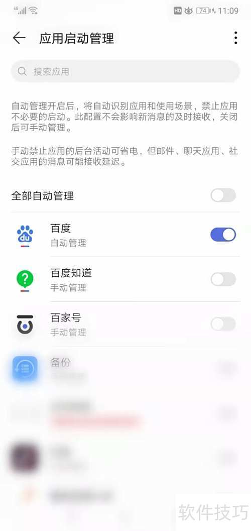 5、 开关呈蓝色时,表示已开启应用自动启动管理功能。