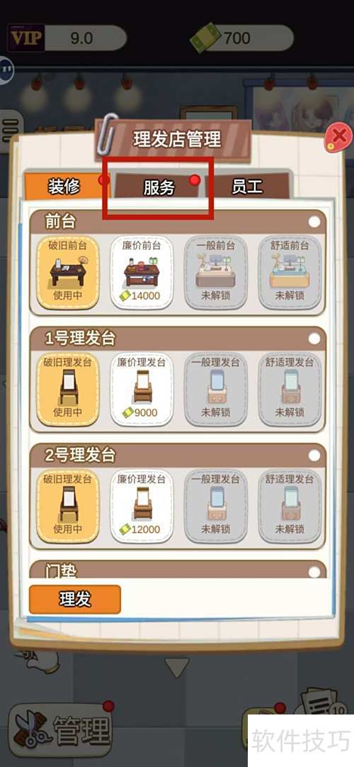 1、 启动理发店模拟器,点击管理图标进入操作界面。