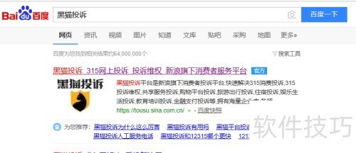 1、 打开电脑并启动百度,搜索黑猫投诉后点击官网链接进入。