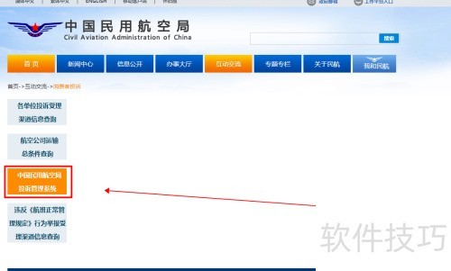4、 登录中国民用航空局官网,进入投诉管理系统提交投诉。