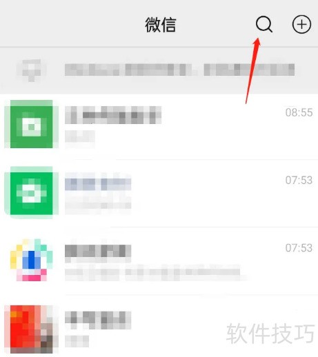 1、 打开微信主页,点击搜索图标开始查找。