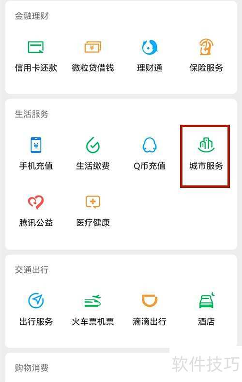 2、 打开微信,进入服务页面,选择城市服务功能。