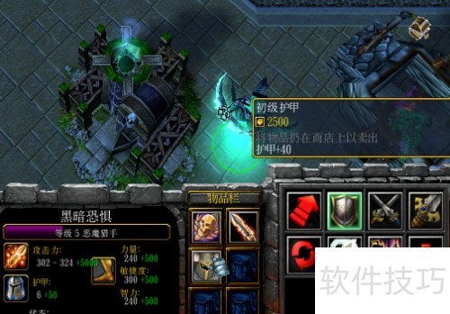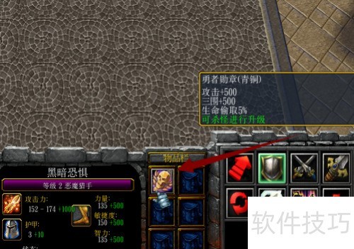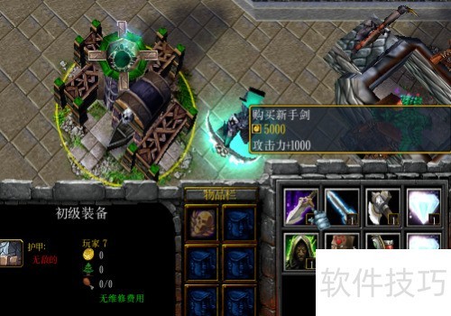 5、 接着前往初级装备商店,选购第一排武器并合成,再选第二排防具进行合成,完成装备准备。