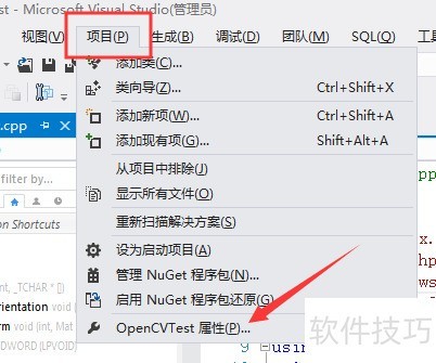 1、 打开工程后,在菜单栏中选择项目,点击属性进行设置。
