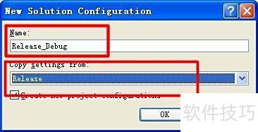 5、 自定义名称为Release_Debug,并在复制设置来源中选择Release选项,完成配置。