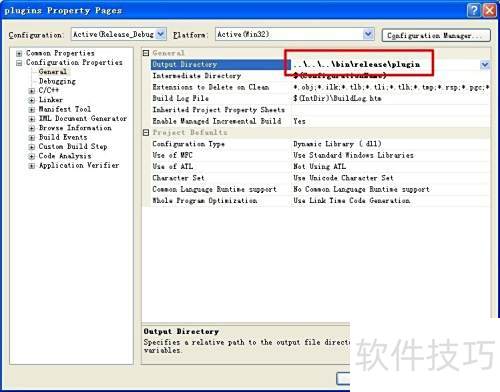 6、 设置工程属性,将输出目录指定为 bin/releaseplugin,确保编译生成的文件正确存放,便于后续调用与管理。
