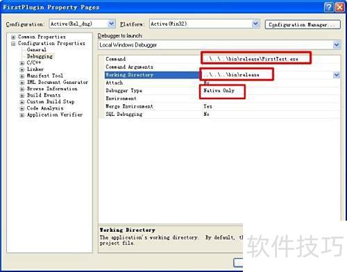 7、 将配置属性中的调试选项下的命令修改为……in eleaseFirstTest.exe,同时将工作目录设置为……in elease,接着将调试器类型更改为仅限本机。通过选择本机调试模式,可实现跨语言的调试功能,有效支持不同编程语言间的协同调试,提升开发效率与问题排查能力,确保程序在混合语言环境下的稳定运行。