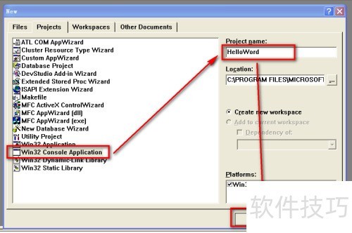 4、 创建一个名为 HelloWord.c 的文件并添加至项目中,具体操作所示。