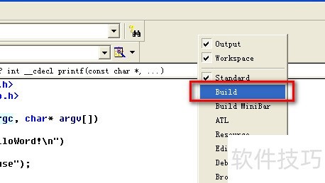 7、 选中Build后,工具栏将显示新增的编译工具,所示。