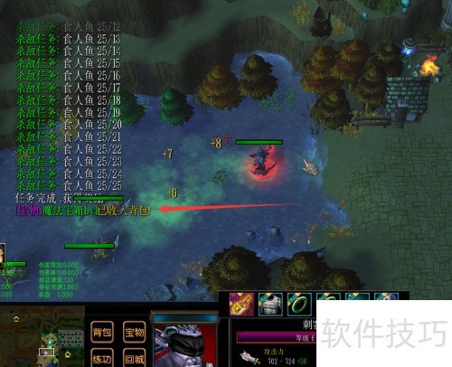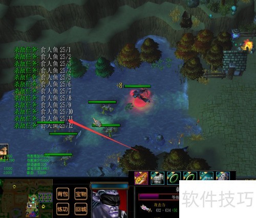 5、 英雄前往击杀食人鱼,完成后左侧会显示已击杀数量,具体所示。