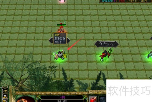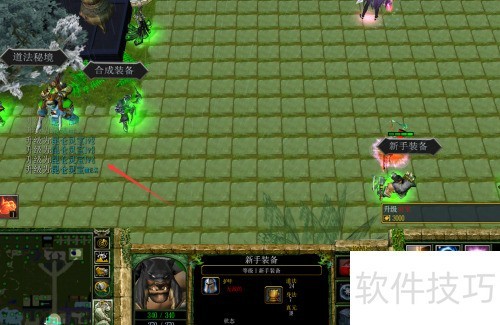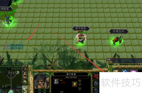 3、 选择英雄后立即出现在基地,引导英雄向下移动,寻找新手装备NPC,位置见下图所示。