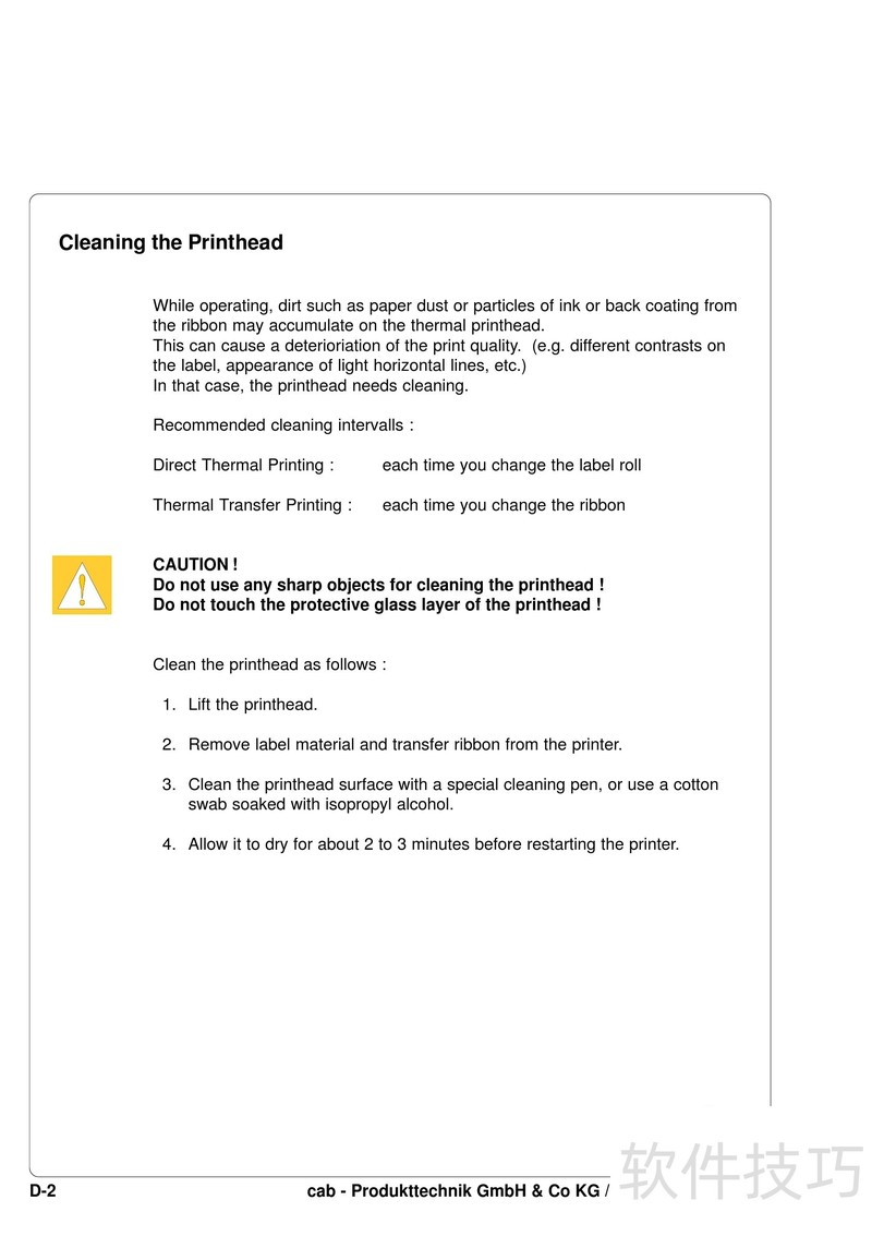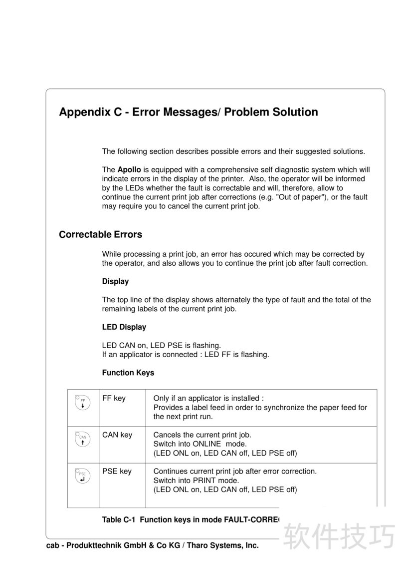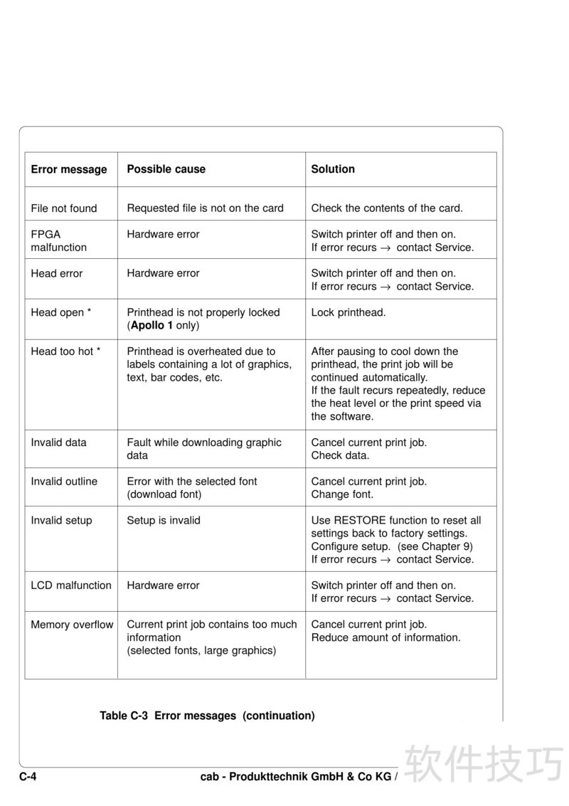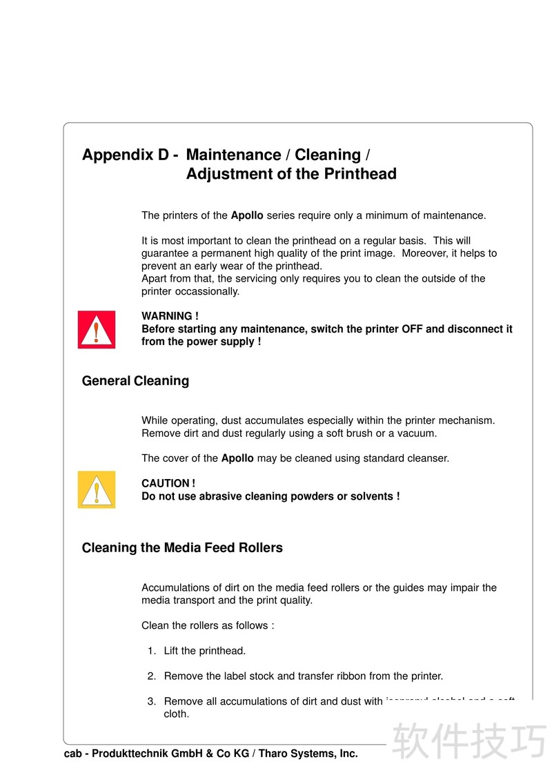 、 本文是cab Apollo 2打印机使用说明书,详细介绍产品操作步骤及常见问题处理方法,帮助用户正确使用设备并快速解决故障。