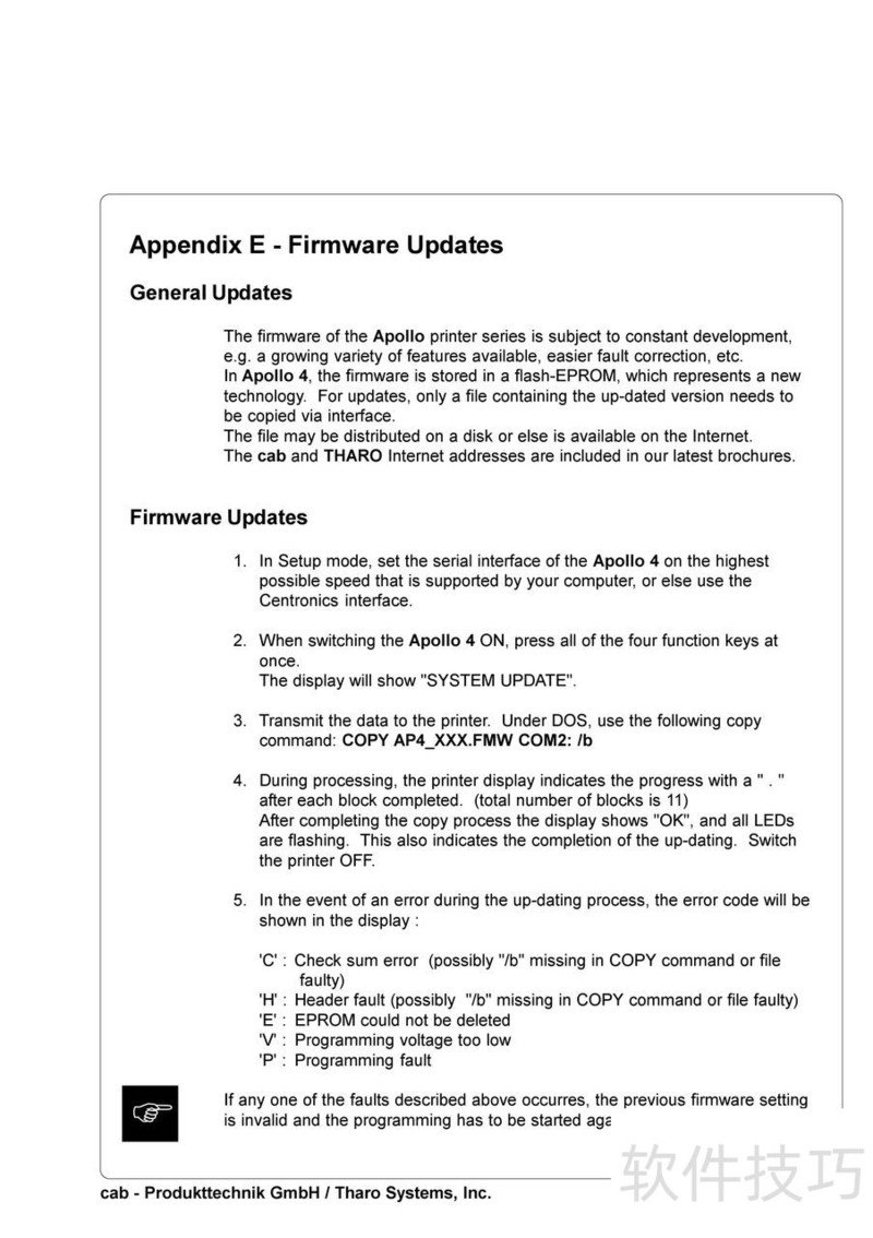 本文是cab Apollo 4打印机使用说明书,详细讲解设备操作步骤与常见问题处理方法,帮助用户快速掌握正确使用技巧。