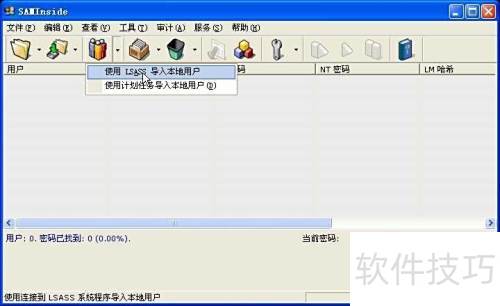 5、 若要破解本地计算机密码,可点击工具栏第三个按钮并选择对应功能;选择通过计划任务导入本地用户后,需等待系统处理,具体界面所示。