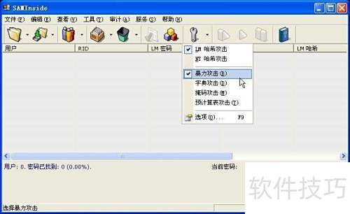 11、 SAMInside具备多种破解手段,包括LM哈希、NT哈希及暴力破解等攻击方式。