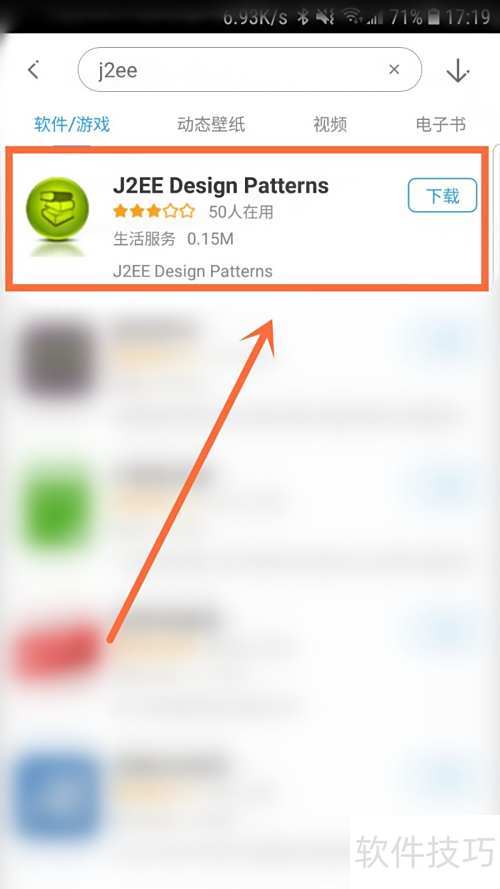 4、 进入搜索结果页面后,点击J2EE设计模式栏目即可进入对应应用。