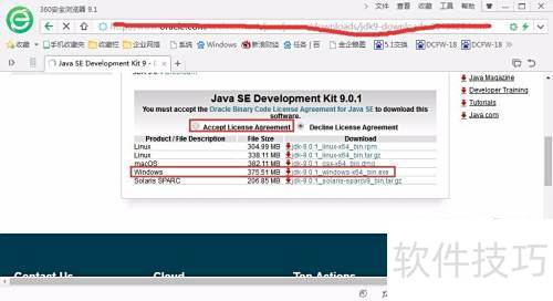 5、 在打开的页面中勾选接受许可协议选项,随后点击与您操作系统匹配的JDK版本,即可开始下载安装程序。