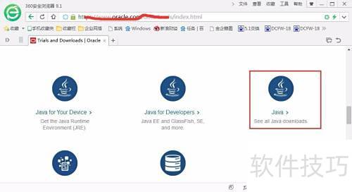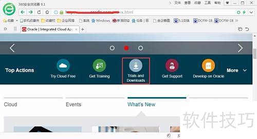 1、 打开IE浏览器,在地址栏中输入ORACLE公司官网网址,按下回车键进入官网首页,随后点击页面上的Trials and Downloads按钮,即可进入相关下载与试用页面。