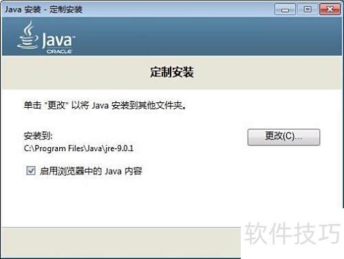 9、 出现自定义安装窗口,可点击更改调整Java安装路径,也可保留默认设置,直接点击下一步继续安装。