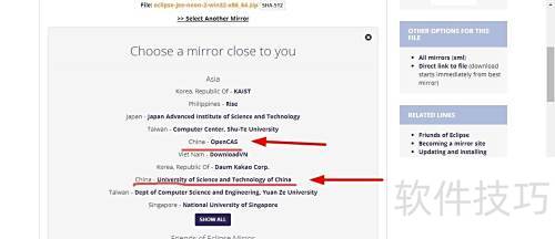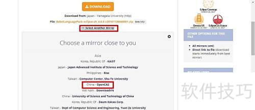 6、 选择离你最近的镜像站点,国内有两个可选,此处以opencas为例进行说明。