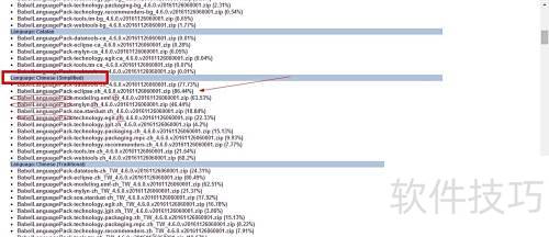 10、 进入后可见多种语言与版本选项。选择简体中文(Chinese Simplified)版本后,其下包含多个分类,其中 babellanguagepack 与 zh 之间为各类插件的语言包,均可下载安装。以 Eclipse 为核心语言包进行示范,适用于主程序界面的中文支持,安装后重启即可生效,操作简便且兼容性良好。