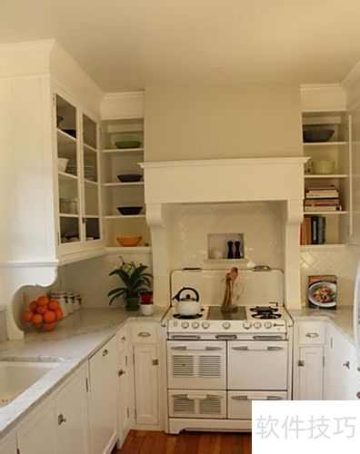 11、 厨房墙面收纳设计巧妙,充分利用空间,既有带玻璃门的吊柜,也有嵌入式搁架,摆放喜爱的装饰碗碟与书籍,让烹饪空间兼具实用性与书香韵味,洋溢着浓厚的文化氛围。