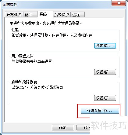 8、 所示,进入计算机的高级系统设置,选择高级选项,然后点击环境变量进行配置。