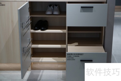 12、 入户玄关若放置鞋柜、全身镜和衣架后,往往难再容纳换鞋凳。缺少换鞋凳极不便利,此时可选择带折叠凳的鞋柜,换鞋时展开,用完收起,节省空间又实用,堪称入户收纳的巧妙设计。