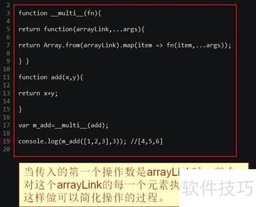 3、 使用multi高阶函数相当于对函数fn进行变换,当首个参数为arrayLink时,会遍历该数组中的每个元素并应用fn操作,从而有效简化处理流程,提升代码的简洁性与可读性。
