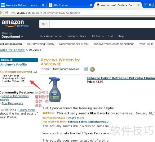 6、 第三步:点击评论后方的人形图标,即可查看评审者的个人资料,包括排名和获得的有用评价数量等信息。