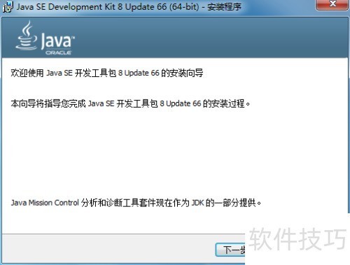 2、 双击安装JDK,按提示一路点击下一步即可完成。