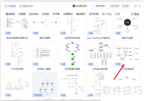 3、 进入在线流程图类别,选取J2EE四层结构图模板。