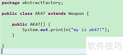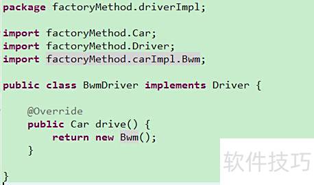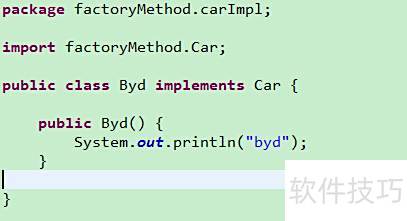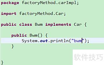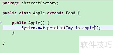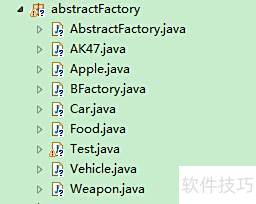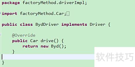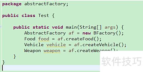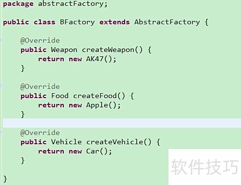 10、 具体产品角色由具体工厂创建,其对象为该角色的实例,通过Java中的具体类实现,所示。
