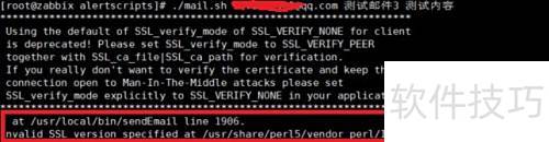 10、 经百度查询确认,此问题由sendemail软件与perl5中的SSL版本不兼容引起,可通过修改sendemail内部代码暂时解决。根本性的兼容问题需等待perl5后续版本更新升级后才能彻底修复,当前仅能采取局部调整方式应对。